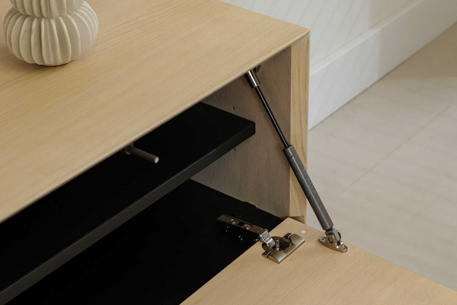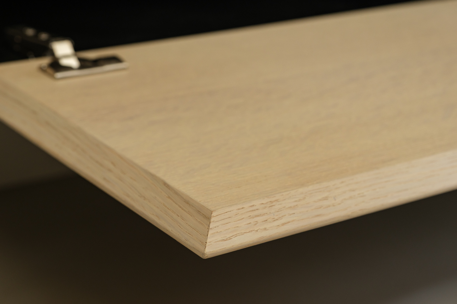 Met dit design tv meubels uit de Excellent serie haal je een zeer stijlvol meubel in huis met een bijzonder hoog afwerkingsniveau. Het Tv meubel volledig naadloos in dubbel verstek uitgevoerd. Met het “push-to-open” systeem en de hoogwaardige gasveren openen de kleppen heel rustig door een simpele duw tegen het front. De kleur en houtnerf geven het meubel een elegante en luxe uitstraling.